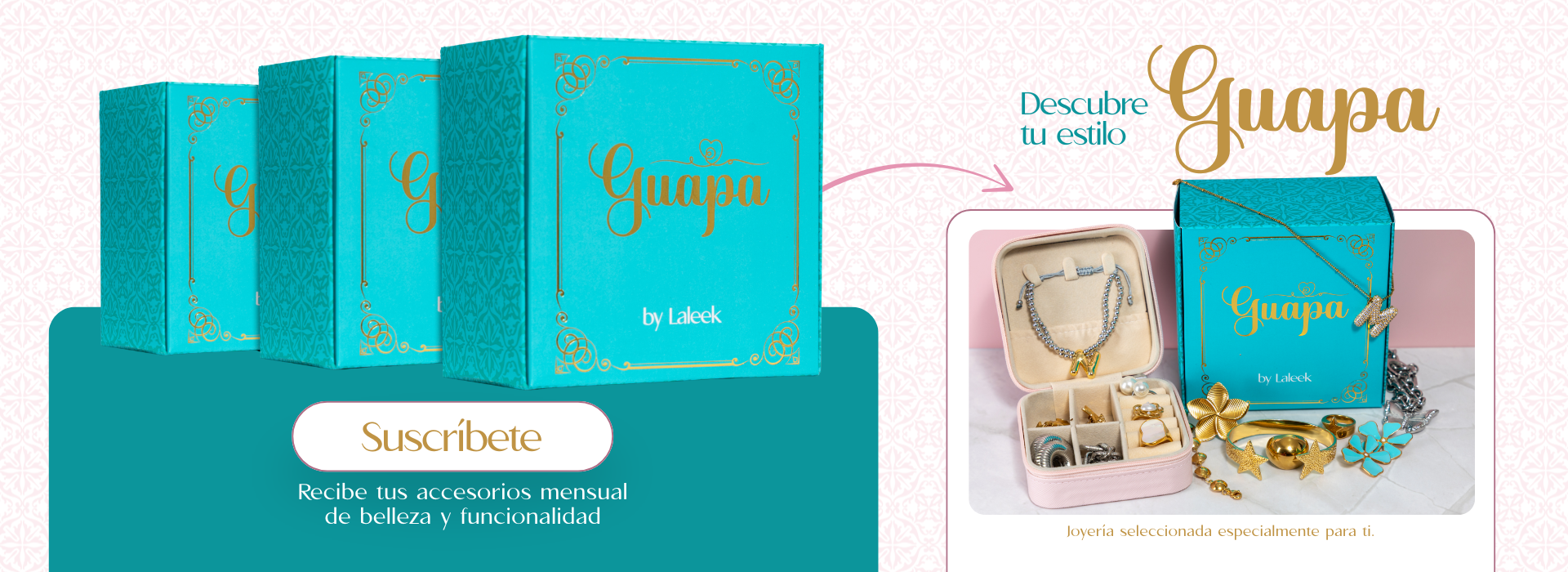 La suscripción mensual GUAPAestá diseñada para mujeres que aman la joyería versátil, funcional y elegante, y que quieren sentirse guapas todos los días.