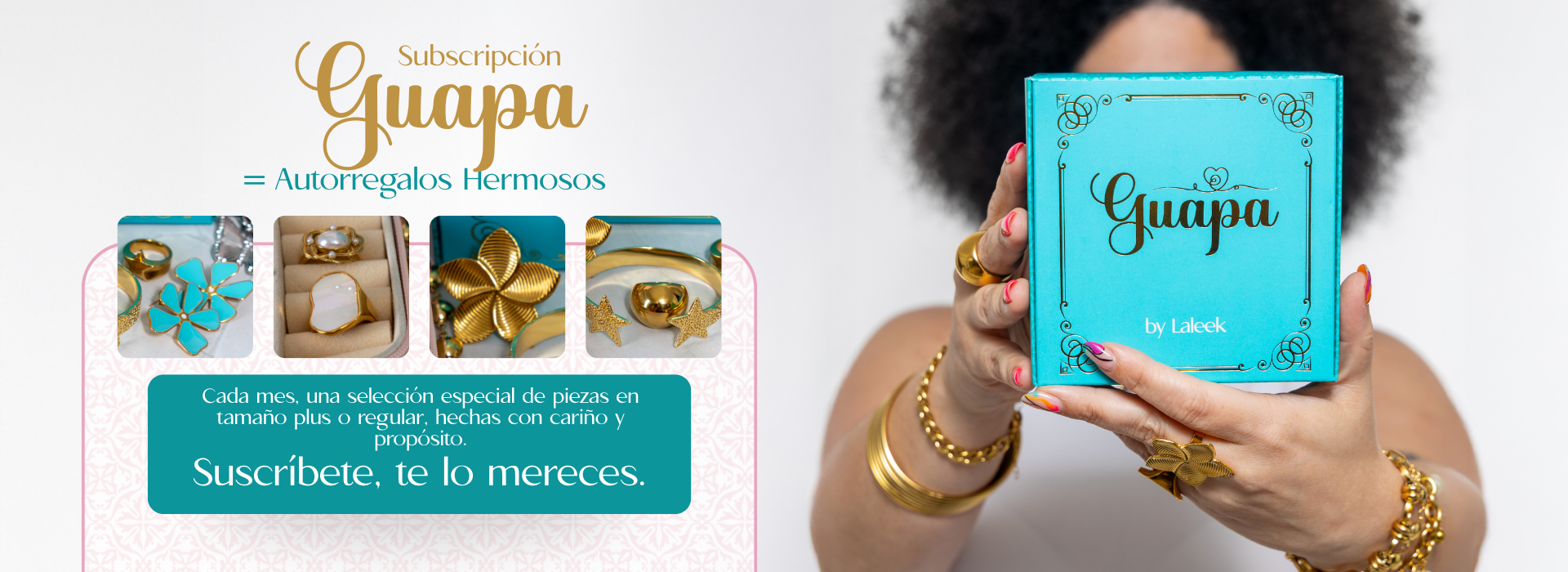 La suscripción mensual GUAPA está diseñada para mujeres que aman la joyería versátil, funcional y elegante, y que quieren sentirse guapas todos los días.