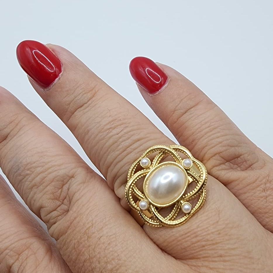 Una sortija que enamora por su delicadeza. Su diseño romántico, adornado con perlas, la hace ideal para quienes prefieren los detalles sutiles y femeninos. Es liviana, ajustable y hecha en stainless steel, para que puedas usarla a diario con total comodidad. Una joya discreta pero con encanto propio.