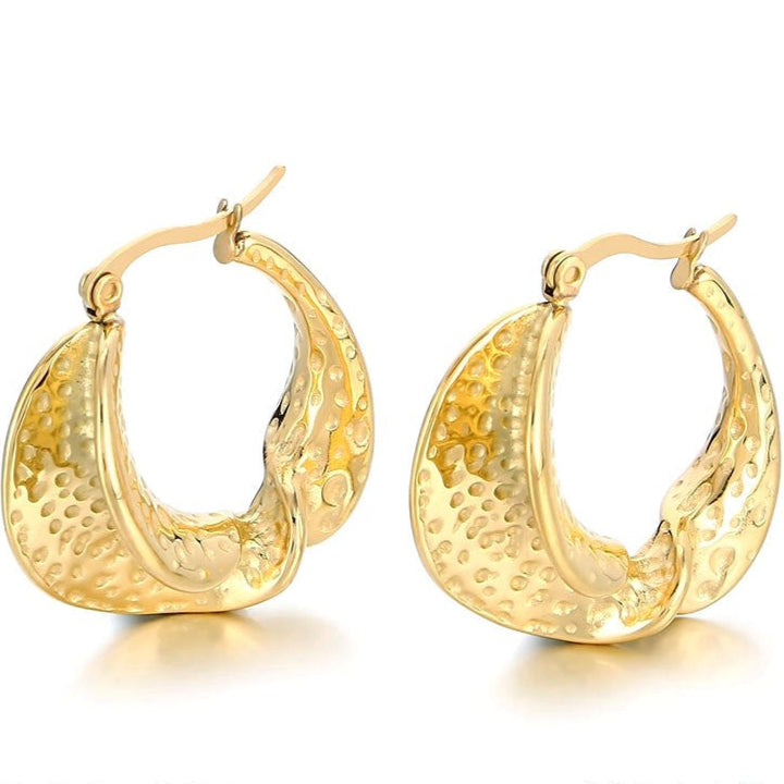 Elegantes y versátiles aretes que combinan a la perfección con cualquier look. Fabricados en acero inoxidable, su tamaño mediano ofrece un estilo cómodo y sofisticado para cualquier ocasión.