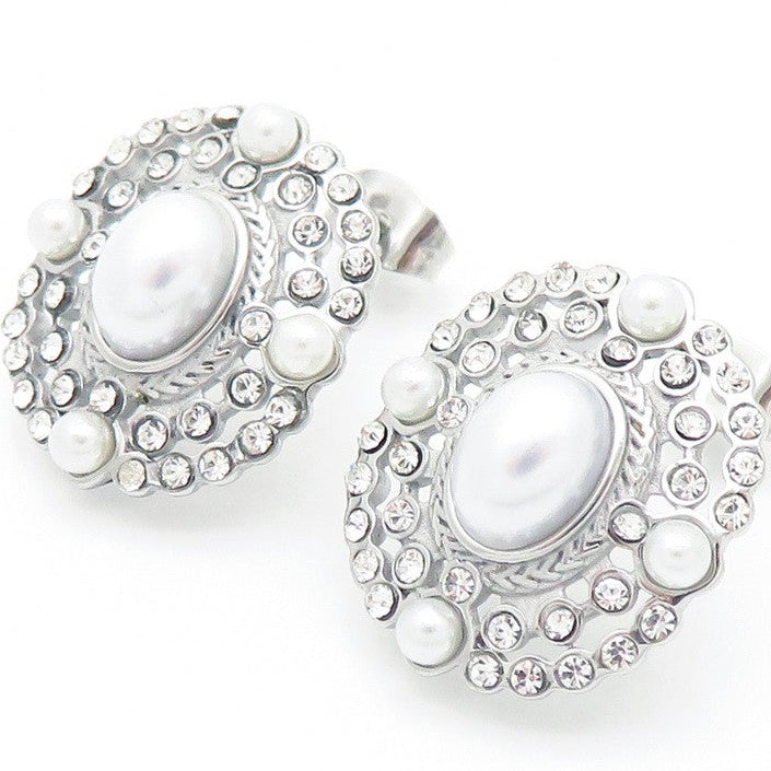 Las pantallas Yamilie combinan elegancia casual con un toque romántico que realza tu estilo diario. Confeccionados en acero inoxidable resistente, son increíblemente livianos para comodidad todo el día. Destellos de zirconias brillantes y perlas delicadas crean un efecto luminoso. Perfectos para quienes buscan accesorios versátiles que transicionen de día a noche, estas pantallas resaltan tu look sin comprometer la comodidad.
